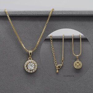 Necklace Chian Length from 15.7in-17.7in,shiny zirconia stone with round pendant show more delicate in formals or daily