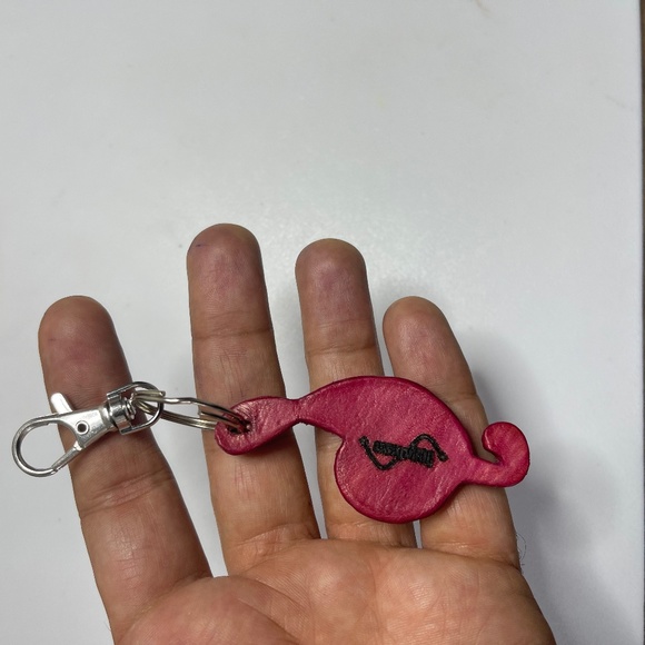 A twelve centimeters pink treble clef keychain designed, and crafted over a two layered leather under the brand Hypoluxo in the U.S.