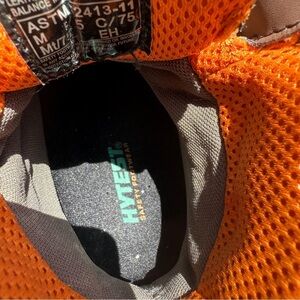 Keywords: Hytest, work boots, leather, waterproof, composite toe, metatarsal guard, safety boots, men's workwear, brown boots, lace-up, durable, rubber outsole, construction boots, pre-owned, ankle boots.