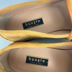 Hyusto Mick Moccasin Light Brown Mustard Yellow Suede Gold Brass Loafers 40 EUR