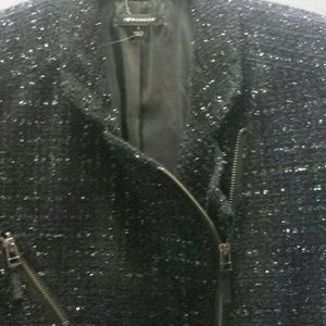 Awesome black & silver tweed Motorcycle style diagonal zipper. Size large. Super cute and stylish jacket.