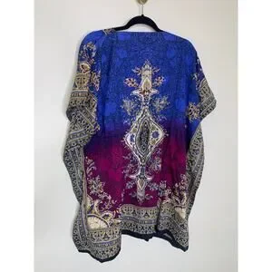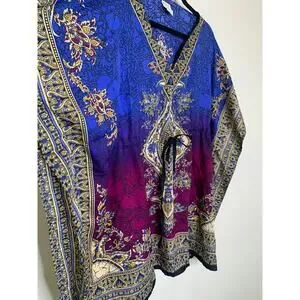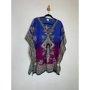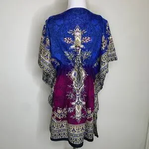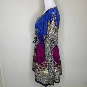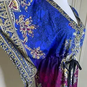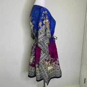 ANJLI Scarf Print Coverup Dress Sz? Medium Blue Gold Purple