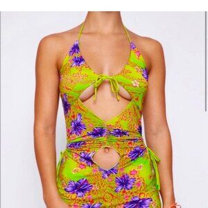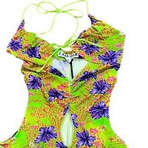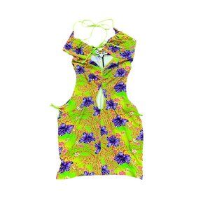 I. AM. GIA. Svana Hibiscus Print Cut Out Halter Mini Dress Bodycon Small NWT