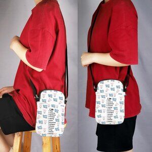 Features: Lightweight and cute, this small crossbody is made of polyester with a waterproof coating and a fun quote print. It measures 8.45 inches by 5.7 inches, ideal for carrying daily essentials like keys, phone, cards, lipstick, and more. Adjustable strap gives you a comfy, custom fit.