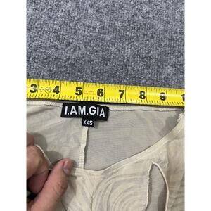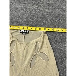 I. AM.GIA Amina Mesh Velvet Burnout Cut Out Low Rise Flare Groovy Pants 2XS Y2K Festival Sheer Clubwear Party Boho Glam Futuristic Beige.