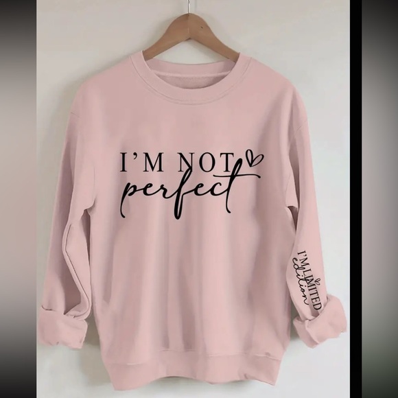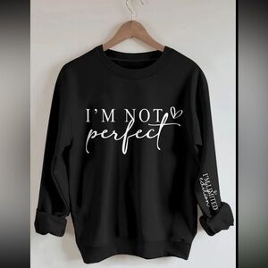 "I'M NOT PERFECT" Letter Print Long Sleeve Crewneck