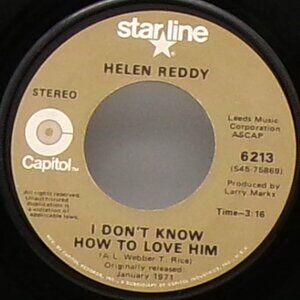 The B side is "I Don't Know How to Love Him" a song from the 1970 album and 1971 rock opera Jesus Christ Superstar written by Andrew Lloyd Webber (music) and Tim Rice (lyrics), a torch ballad sung by the character of Mary Magdalene. In the opera she is presented as bearing an unrequited love for the title character. The song has been much recorded, with "I Don't Know How to Love Him" being one of the rare songs – after the 1950s, when multi-version chartings were common – to have had two concurrent recordings reach the Top 40 of the Billboard Hot 100, specifically those by Helen Reddy and Yvonne Elliman.