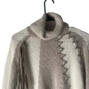 Stay warm in this I. B. Diffusion Size Large Silk Angora Lambswool Western Turtleneck Sweater. Knit with a cozy turtleneck and slouchy ribbed sleeves. Leather tassel and stitching accents to give the western vibe.