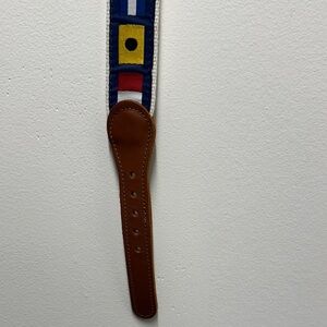 I. Bailey Nautical Flag Pattern Belt with Brown Leather