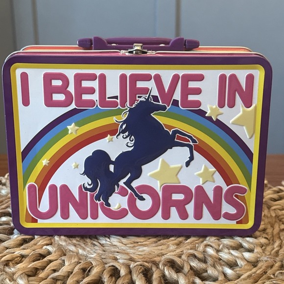 I Believe in Unicorns Rainbow Metal Lunchbox Tin 8x5.5" – No Thermos EUC