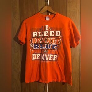 I Bleed Orange Blue Go Denver. Denver Broncos shirt. Size Medium. Orange & Blue