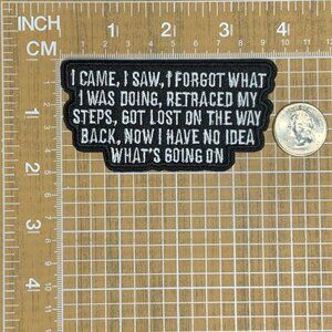 I Came I Saw I Forgot What I Was Doing ... Black White Embroidered Iron On Patch