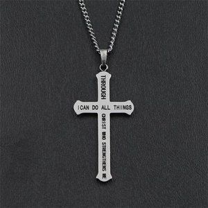 "I Can Do All Things with Christ" 18k Gold Cross Necklace