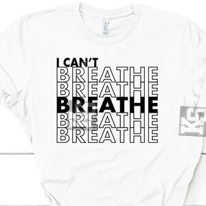 Too many names to mention for emphasis. I Can't Breathe Tee. Available in white, various sizes (small upcharge for larger sizes), crew. This is a unisex Tee. Specify tee type when ordering. Hoodies are $40. Orders your today.