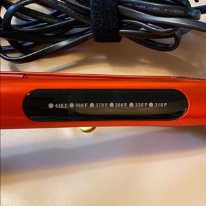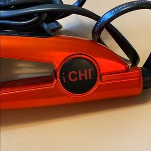 Red & Black Flat iron hair straightener by i Chi. in really great condition, almost in brand new condition & plates are in pristine condition & comes with the original leather like bag! plates are a matching red too! stylish and great condition!