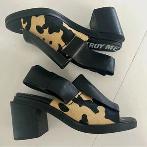 I Desire The Things That Will Destroy Me Heeled Ankle Strap Black Leather and Calf Animal Print Sandals