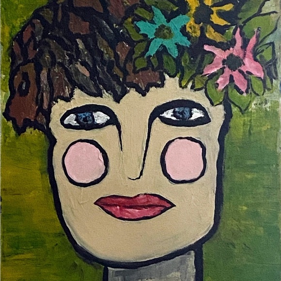 My attempt at being spontaneous and whimsical. I am usually a controlled painter even in my abstracts, this was me just letting go with nothing planned when I started. It turned out to be a fun exercise and kind of reminds me a bit of a Picasso-like vibe