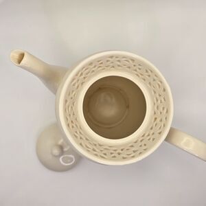 Elevate your tea or coffee service with this vintage I. Godinger & Co. coffee pot. Featuring a delicate lace-edged design and a timeless cream color, this piece exudes elegance and charm. Perfect for entertaining or display, its in excellent condition with no chips or cracks. A beautiful addition to your collection or gift for any vintage enthusiast.