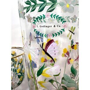 I Godinger & Co. Glass Pitcher & Goblet Set Gold Rims Hand-Painted