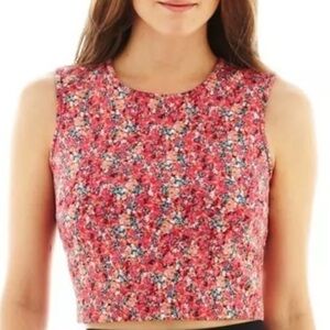 I HEART RONSON Crop Top Ditsy Floral Scuba Feel Zip Size Large