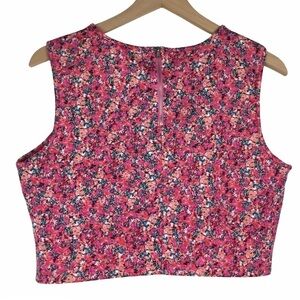 I HEART RONSON Crop Top Ditsy Floral Scuba Feel Zipper Retro Style Y2K Large