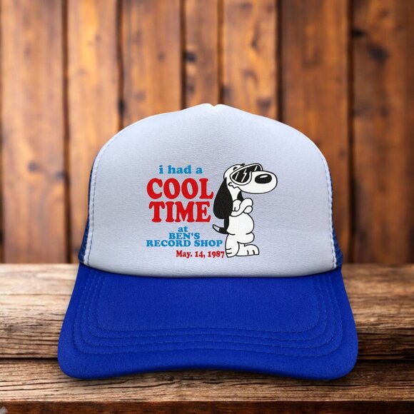 I Had A Cool Time At Ben's Record Shop 1987 Mens Trucker Hat Blue Old Ad Cap