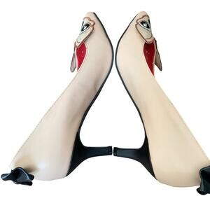 I Heart Beige Tan Chihuahua Kitten Heels Bow Back Faux Leather size 9 Puppy Dog in excellent condition- no box. Heel height is 2 1/2 inches