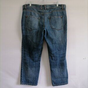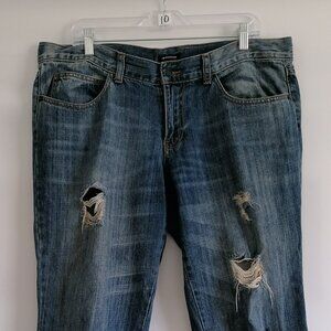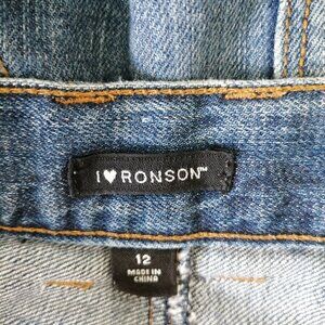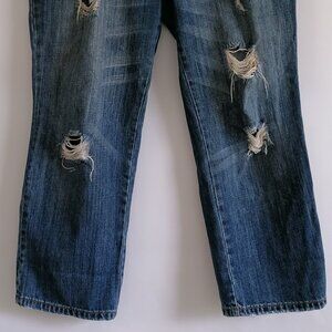 I Heart Ronson Womens Blue Distressed Straight Leg Denim Boyfriend Jeans Size 12