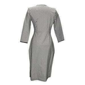 • Sequin top • Contrast pattern • 3/4 sleeves • Black and white • Side slit • Machine washable • Long Sleeve • Stretchy Material • Zips up the Side