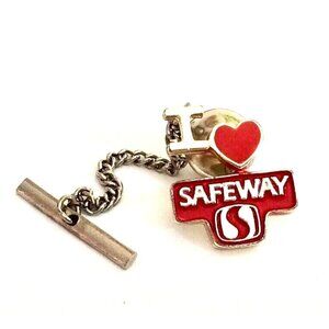 I Heart SAFEWAY Employee Enamel Tie Tack & Chain Lapel Pin Grocery Stores
