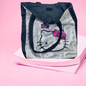 I 💗 Hello Kitty l Silver Sequined Tote l Black w/ pink stitching l Double-handle l EUC