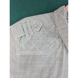 I Jeans By Buffalo - grey short sleeve casual button-up. Light grey. 77% cotton 23% polyester. Very good pre-owned condition. Non-smoking home. Measurements laying flat: