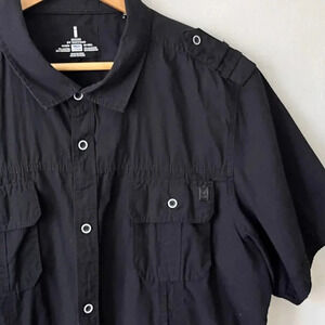 I Jeans By Buffalo Shirt Mens XXL 2XL Black Short Sleeve Button Up Casual