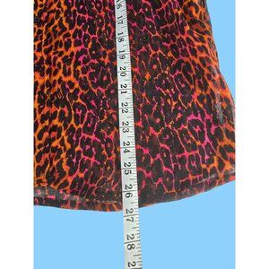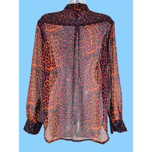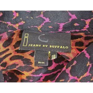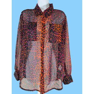 I Jeans by Buffalo Size M Sheer Tunic Button Blouse Leopard Orange Pink Black