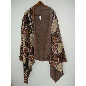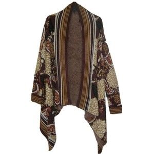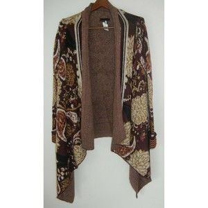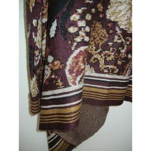 I Jeans by Buffalo Women’s Cardigan Sweater Burgundy Tan Bohemian Style Medium