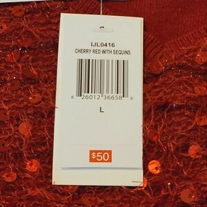 I Jeans By Buffalo Red Sequin Fuzzy V-neck Party Sweater Size L