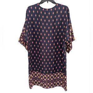 I Joah Navy Blue multi southwestern diamond sheer open front kimono womens M