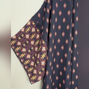 Joah Navy Blue multi southwestern diamond sheer open front kimono womens M