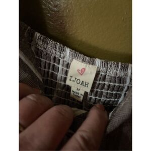 I Joah size M linen cotton midi sundress. Adjustable straps. Wide rushed elastic back. About knee length or just below . Pit to pit 27” and length 38”.