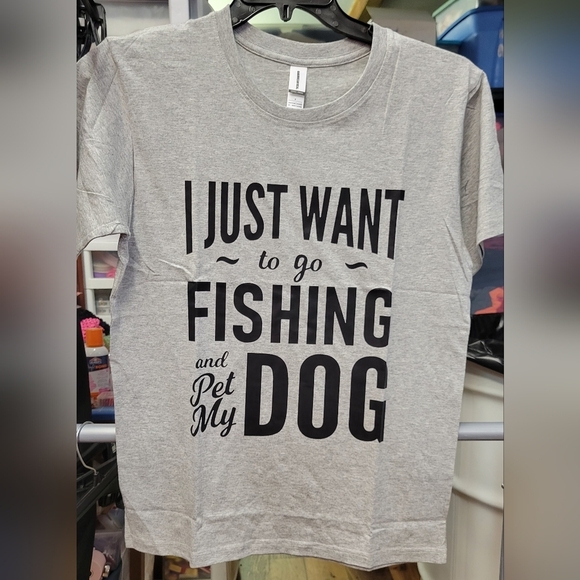 I Just Want To Go Fishing and Pet My Dog Gray T-Shirt Small
