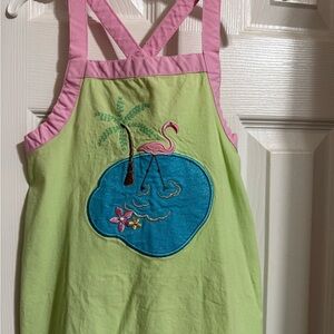I. Khaki Flamingo Sundress Green sleeveless dress with pink trim Flamingo walking in water appliqué on front Size zip Size 4T Smoke free home