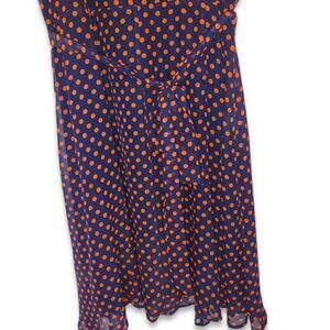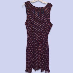 I LE New York Navy Dress Red Orange Polka dot Sleeveless Scoop Neck Chiffon Blue