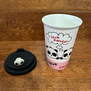 I LOVE PANDA Ceramic Travel Mug with Silicone Lid