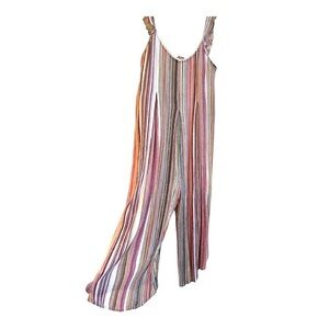 I LOVE, WOMENS, STRIPED ROMPER. CROPPED, WIDE LEG, V-NECK WITH BACK TIE. SIZE S