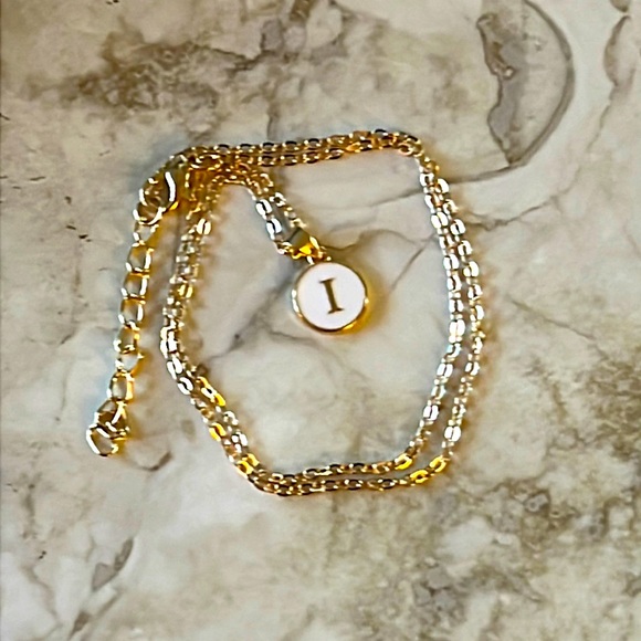 Letter I Necklace made with gold plated chain.