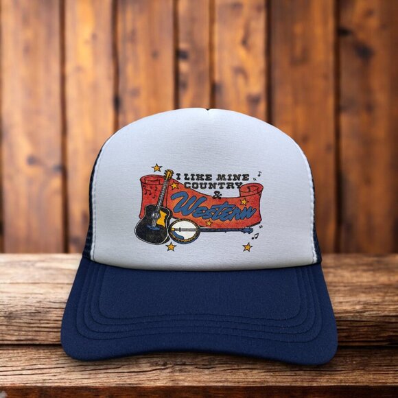I Like Mine Country And Western Unisex Trucker Hat Navy Snapback Honky Tonk Cap