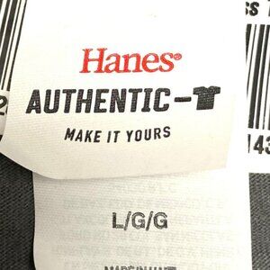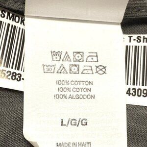 This is a NOS (New Old Stock), gray, large, 100% cotton T-shirt from Hanes and was manufactured in Haiti. We measured 22" across and 30" top to bottom.