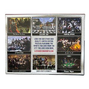 I Love Boston Sports Limited Edition Sports Puzzle - "The Spirit of New England". 500-piece puzzle with mascots from the Boston Red Sox, Boston Celtics, and New England Patriots marching in a revolutionary war parade... Wally (Red Sox), Lucky the Leprechaun (Boston Celtics), & Pat the Patriot (New England Patriots).