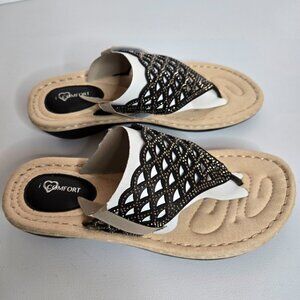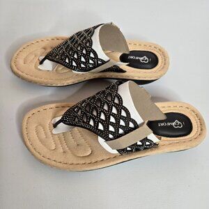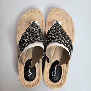 I Love Comfort Erika Black Thong Flat Wedge Sandal Sz 9M