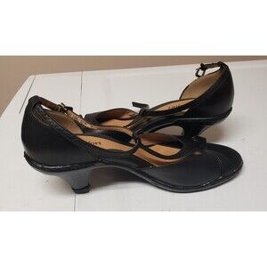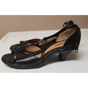I Love Comfort Women's Black Leather Open Toe Strap Low Heel Sz 8M PO Excellent